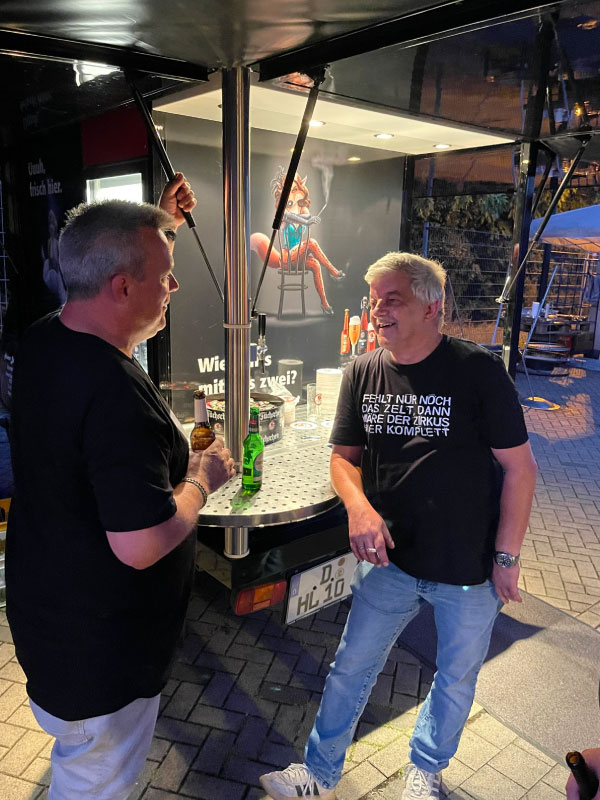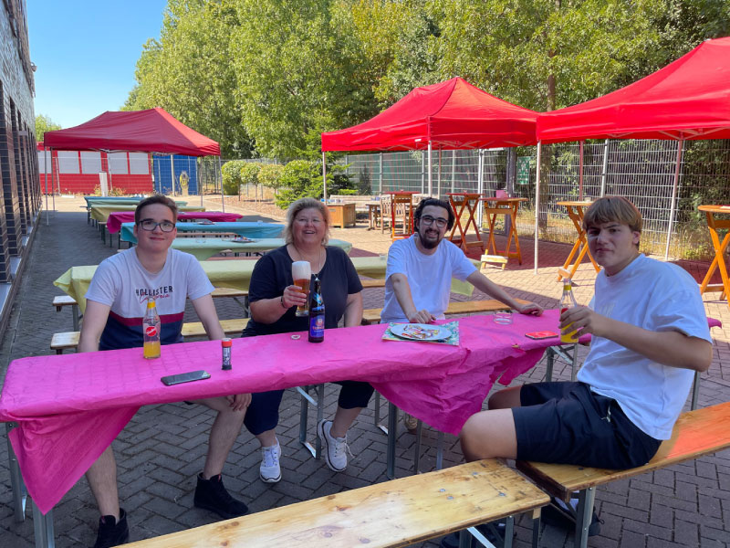 Ob leckeres vom Grill, süße Snacks wie Slush-Eis und Popcorn oder kühle Getränke – für das leibliche Wohl ist immer bestens gesorgt. Sportliche Aktionen wie Torwandschießen oder Tennis sorgen für Spaß und Teamgeist, und manchmal entstehen dabei sogar kleine Legenden – wie unsere „Backstreet Boys“ auf der Bühne.